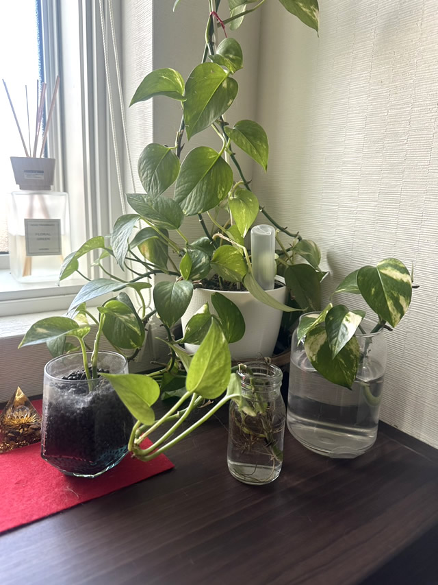 我が家には観葉植物がいくつかありますが、その中でも私はポトスが大好きで、家中に置きたくて水耕栽培に励んでいます。